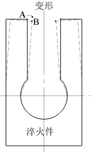 一般未淬火件切割凹槽后会由A点张开至B点,淬火件则会由A点向中心收缩至B点。下面以淬火件为例,说明如何控制其尺寸精度。