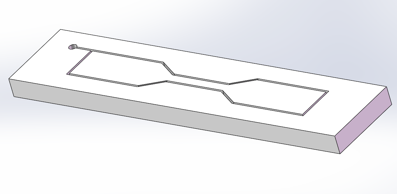 线切割加工一般凸模零件时,传统加工方法是在坯料内钻一个穿丝孔,而后按编制好的程序切割。然而对于细长条形零件而言,如图1所示的这种传统切割方法将使零件产生较大的变形。