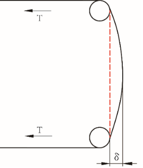 由电极丝“单边松丝”导致的张力变化所引起的。由于电极丝本身为半柔性体,经过导轮后将产生抛离效应,偏离导轮公切线δ距离。而出现“单边松丝”时电极丝的张力是周期性逐渐变化的,导致偏离上下导轮公切线δ距离也是逐渐变化的,由此在切割过程中就形成了V型条纹,如图2(a)。这种V型条纹在切缝的两边都会出现,并且一般出现在电极丝切割一段时间后(一般2-5小时后),且随着“单边松丝”情况的加剧,条纹愈加明显,因此保障电极丝张力恒定是解决V型条纹形成的主要方法。